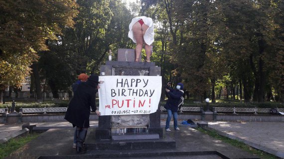 Активістки жіночого руху Femen привітали президента РФ Володимира Путіна.