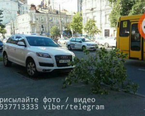 У Києві на вул. Саксаганського білу Audi припаркували на молодому дереві.