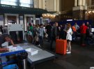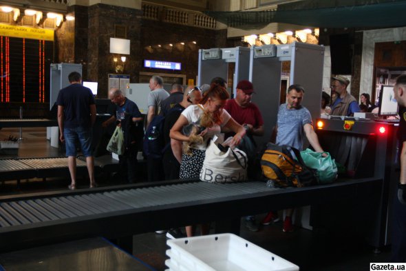 Своєю чергою працівники Укрзалізниці допомагають пасажирам зорієнтуватися та підказують, як потрібно проходити перевірку. Стежать за тим, щоб біля металошукачів не скупчувався натовп.