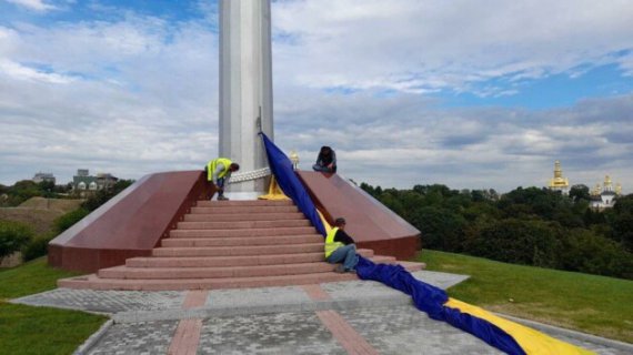 27 серпня у соціальних мережах почали ширити фото найбільшого стяга України, який лежить біля підніжжя 90-метрового флагштока Києва, збудованого до 29-ї річниці Незалежності України.
