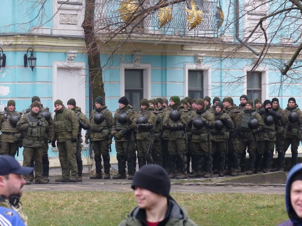 Третя сила присутня на мітингу - поліція та Національна гвардія. Їх підрозділи чергують біля Національного музею історії та по периметру. Групи швидкого реагування стоять між обома таборами.