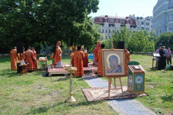 У квітні 2006 року церковники з Києво-Печерської лаври попросили в київської мерії дозволу провести великий молебень на місці Десятинної церкви. Для потреб священників, було встановлено тимчасовий намет.