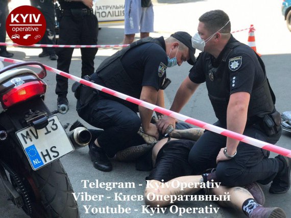 У Києві в суботу 18 липня патрульны по гарячих слідах затримали чоловіка, який відібрав мотоцикл, погрожуючи зброєю.