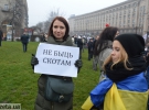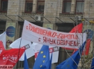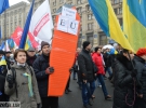 Рядові учасники мітингу "за європейську Україну" креативно підійшли до створення плакатів з підручних матеріалів. Крім традиційних написів, що "українці за європейський вибір", партійних та національних прапорів, які заполонили весь простір, були також кілька оригінальних.