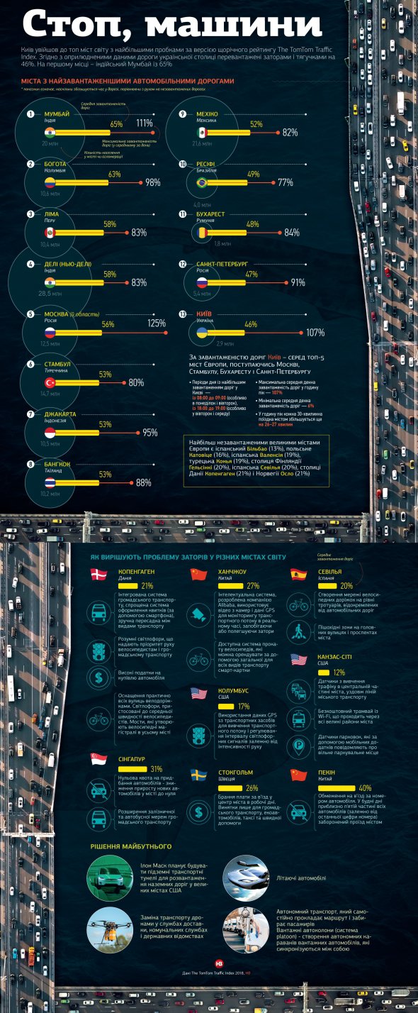 За завантаженістю доріг Київ входить до топ-5 міст Європи, поступаючись лише Москві, Стамбулу, Бухаресту та Санкт-Петербургу.