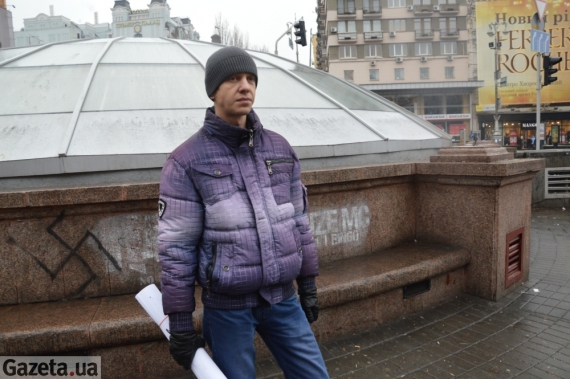 "Люди не прийшли розбирати барикади Євромайдану через залякування і погрози активістів. Подивіться, навіть зараз з-за кутів ринку виглядають та слідкують за мною міцні хлопці в стрічках Євромайдану. Я родом з Одеської області, живу в Києві вже 3,5 роки. Мені набридло, що вже місяць неможливо нормально пересуватись по центру міста. Я кинув заклик, багато хто в інтернеті на це підписався, але прийшло тільки четверо рішучих. Я просив у комунальників надати необхідну техніку для розчищення центру Києва, але прохання проігнорували. Так само, мене проігнорували міліціонери в яких просив допомоги в організації охорони правопорядку", - розповів чоловік.