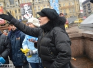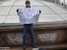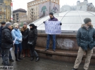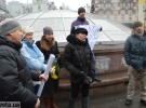 За півгодини до чоловіка приєдналися троє жінок та молодий хлопець. З собою принесли пакети для сміття, рукавиці. Згуртувались навколо плакату "Долой беспредел Майдану", їх обступили зі всіх сторін 20 журналістів.