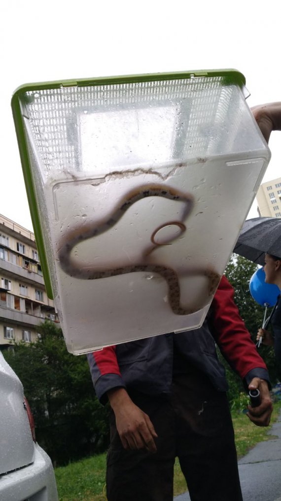 "Виявилося, що втік маїсовий полоз. Він виліз із погано закритого тераріуму у квартирі, а потім зліз деревом із висоти четвертого поверху. Покинувши будинок, він проповз вулицею значну відстань і заліз в автомобіль, у шпарину між бензобаком і днищем машини", – ідеться в повідомленні.