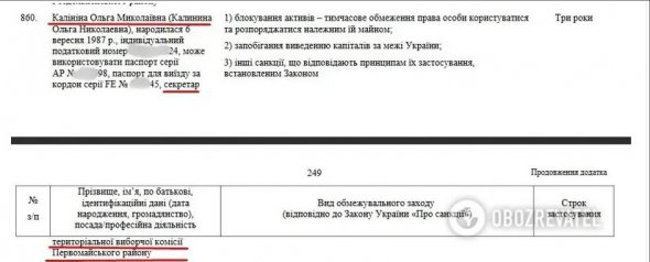 Згодом з'ясувалося, що в списку санкцій РНБО (від 2018 року) були не просто вказані ПІБ, але й розкриті персональні дані киянки: ІПН, паспорт громадянина України, паспорт для виїзду за кордон і т. д. А вишенькою на торті стала "посада" – "секретар територіальної виборчої комісії Первомайського району". Однак до "виборів" в окупованому Криму Ольга не мала жодного стосунку.