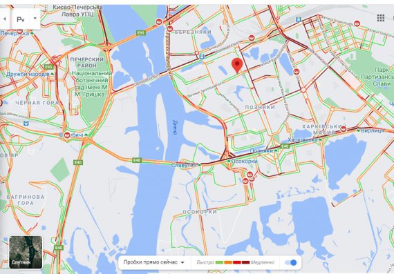 Ускладнений рух спостерігається поблизу станцій метро на лівому березі - Лівобережна, Дарниця, Чернігівська, Осокорки, Позняки та Вирлиця.