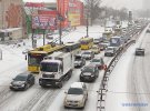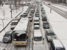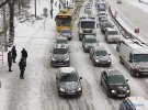Столицю зранку, 8 лютого, скували затори й ускладнення руху через складні погодні умови.