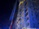 В Оболонському районі сталося загоряння на верхніх поверхах багатоповерхового будинку. Вогонь перекинувся на дах. На відкритій території згоріли сім автомобілів. Уламки впали у двір житлового будинку. Постраждала також будівля дитячого садка.