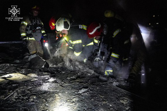 "У ніч на 28 березня до оперативно-координаційного центру Головного управління ДСНС у Києві почали надходити повідомлення про вибух і пожежу у Святошинському районі. Внаслідок ворожої атаки у триповерховій адміністративній будівлі сталася руйнація будівельних конструкцій на площі 200 квадратних метрів", – йдеться у повідомленні.