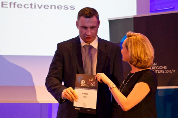 У конкурсі видання Foreign Direct Investment Magazine "Європейські міста і регіони майбутнього 2016-2017" столиця України перемогла у номінації "Найкраще європейське місто майбутнього з точки зору рентабельності". Нагороду Києву журі конкурсу присудило з точки зору привабливості для міжнародних інвесторів.