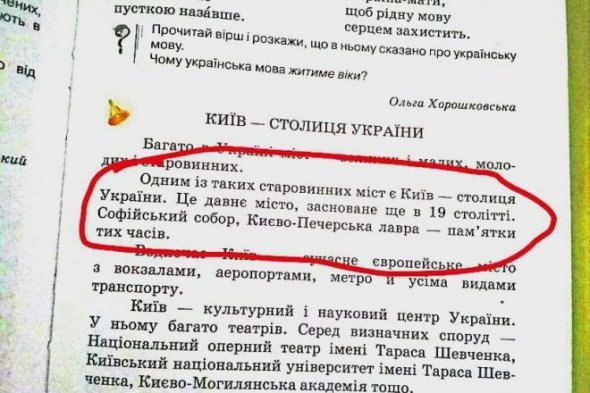 У мережі поширили фото сторінки підручника "Літературне читання" для 3-го класу, в якому помилково зазначено дату заснування Києва - XIX ст.
