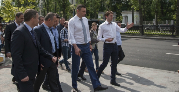 Київський міський голова Віталій Кличко проінспектував бульвар Тараса Шевченка, який відкрили після капітального ремонту дорожнього покриття.