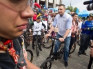 Мер Києва Віталій Кличко взяв участь у велопараді, який влаштувала велоспільнота столиці з нагоди Дня Києва.