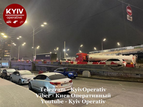 Вантажівки не можуть виїхати на підйом. На Шулявському мосту стала колона фур.