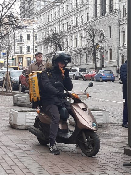 У чергу стає кур'єр служби доставки Glovo. За 10 хв. забирає замовлення на офіс – 10 перепічок.
