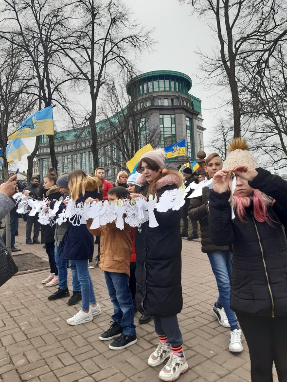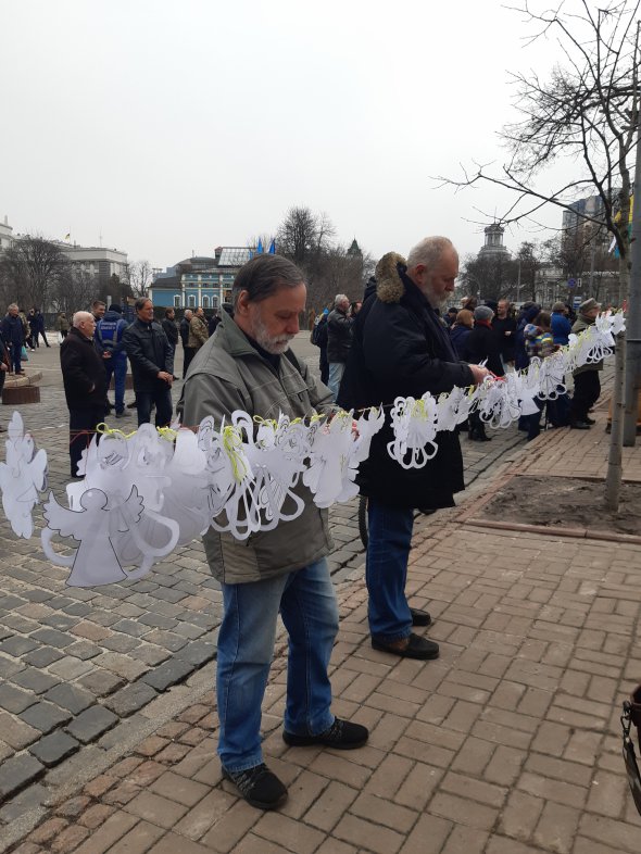"Нині вулиця Інститутська має назву Алея Героїв Небесної сотні. Від 2014-гокияни збираються у дні 18-29 лютого біля верхнього входу до метро Хрещатик, розвішують білих паперових ангелів на деревах, які були свідками розстрілу мирних людей", - розповіла координаторка акції, співачка Анжеліка Рудницька.