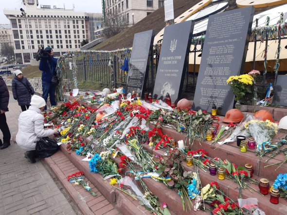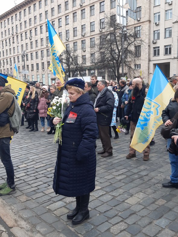 "Я приходжу сюди щороку після тих трагічних подій, щоб вшанувати пам'ять загиблих, - каже Людмила Остапова, тримаючи в руках червоні гвоздики. - На жаль, зараз це єдине, що ми можемо для них зробити. Вони ж віддали життя за те, щоб ми тут жили у вільній країні. Того дня на Майдані мене не було, але я долучалась як могла протягом всього періоду. То теплі речі приносила, то чай наливала. Сьогодні взяла гвоздики, бо це траурні квіти і символ спротиву, який ми проявили 6 років тому".