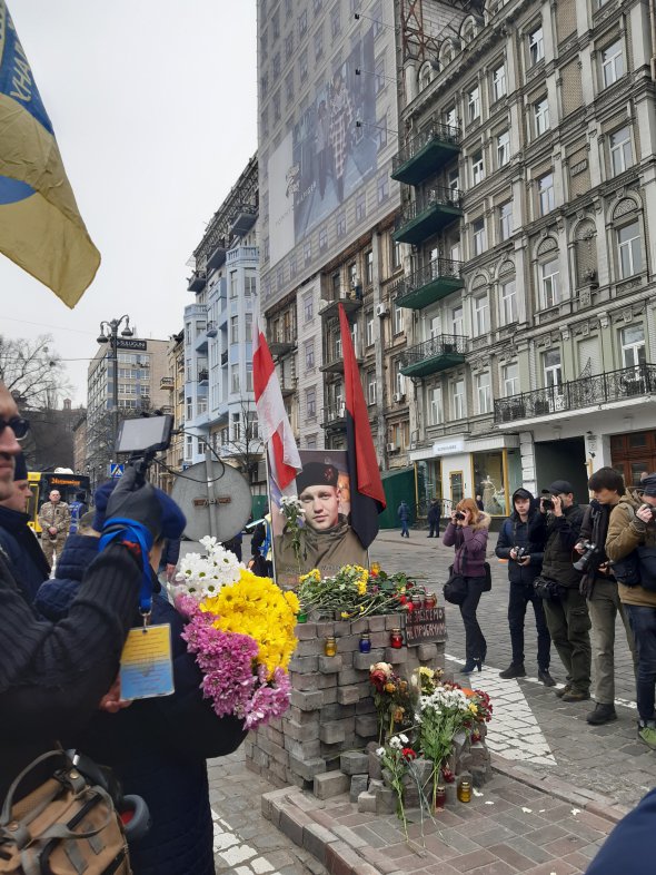 У 6-у річницю розстрілів на Майдані та початку війни з РФ активісти вивісили банер над Алеєю Небесної сотні з написом "Росія почала війну тут!" Активісти протягом дня стежитимуть, аби банер не зняли комунальники чи правоохоронці, та закликають небайдужих громадян допомогти їм із чергуванням", - повідомляє "Рух опору капітуляції".