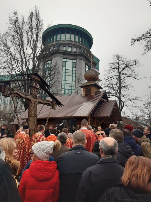 Хлопці долучаються до колони, яка прямує до храму, котрий розташований на Алеї Героїв Небесної сотні. Там зібрались священики разом з всіма охочими, щоб відправити панахиду за померлими.