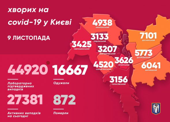 За весь час пандемії коронавірус забрав життя 872 жителів Києва. Підтверджених випадків захворювання на Covid-19 в столиці вже 44 920.