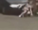 На кадрах видно, як дві жінки йдуть по тротуару, ззаду їх наздоганяє чорне авто і переїжджає одну з них переднім колесом.