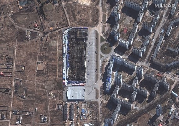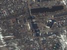 На супутникових знімках передмістя столиці можна помітити розгромлені російськими ракетами об'єкти інфраструктури. На одній із світлин видно палаючі паливні баки на підконтрольному РФ аеродромі "Антонов" у Гостомелі.