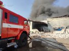 "Горить одноповерхова складська будівля з продуктами з частковим руйнуванням будівельних конструкції стін та даху", - йдеться в повідомленні.