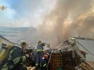 "Через загрозу обвалення конструкцій підрозділи гасять полум'я з зовнішньої сторони будівлі", - додали рятувальники.