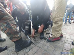 За словами одного з учасників акції, депутата від "Самопомочі" Єгора Соболєва, з боку паркану-сітки, де знаходиться кордон силовиків, висунувся загін спецпризначенців.