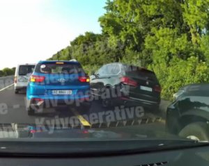 На кадрах видно, що кермувальник, намагаючись об'їхати затор, застряг на узбіччі й деякий час не міг продовжувати рух.