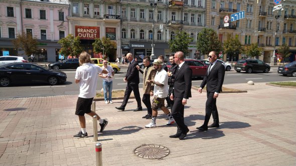 "Моргенштерн (двійник?) гуляє Хрещатиком із купою охорони та знімає відоси. Алло, Служба безпеки України?" - написав Козлюк.