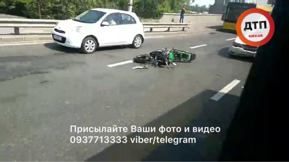 На мосту Патона у Києві сталася ДТП за участю легковика Daewoo Nexia і мотоцикла.