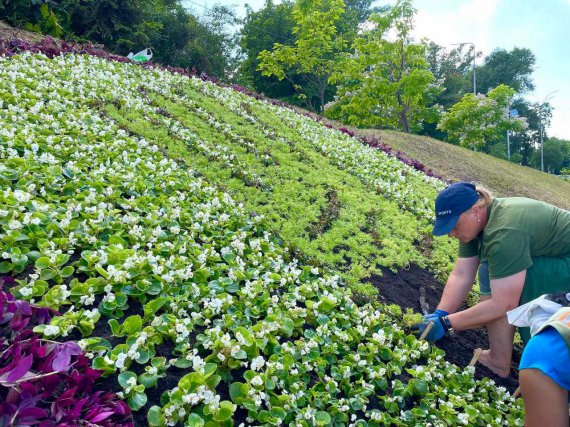 "Спочатку ескізи клумб розробляють дизайнери. Потім погоджує директор", – ідеться в повідомленні.