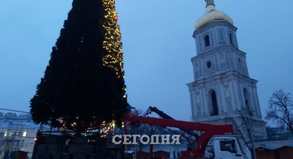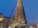 У Києві вже почали прикрашати головну ялинку гірляндами, але поки не вішають іграшки.