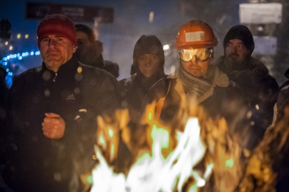 "Я тут вже тиждень і їхати не збираюся. Буду зі своїм народом до кінця", - каже хлопець років 25 з прапором України в руках. Деякі мітингувальники скаржаться, що ходити по вулиці через пошкоджену бруківку і вкриті льодом дороги стає все складніше.
