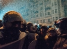 "Але це додає нам ентузіазму і ніяк не повпливає на те, щоб ми звідси пішли", - каже інший протестуючий в чорній масці. Деякі намагаються мирно спілкуватись з бійцями внутрішніх військ.