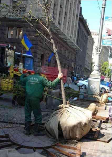 28 травня 2012 року при підготовці до Євро-2012 на вул. Хрещатик від Бессарабської до Європейської площі вирубали дерева. Замість них облаштували клумби.