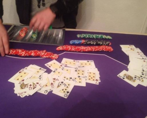Зазначається, що на місці події працівники поліції вилучили 4 покерних столи, за якими знаходилися шестеро гравців, фішки, карти та інше гральне обладнання.