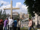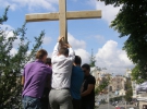 Тимчасову дерев'яну конструкцію прикріпили до нижньої частини попереднього хреста. Через тиждень активісти обіцяють встановити постійний хрест, такий, як був раніше.