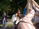 Як повідомлялося, 17 серпня вранці активістки "Femen" спиляли бензопилою і повалили поклінний хрест в центрі Києва недалеко від Міжнародного центру культури і мистецтв (Жовтневий палац). Таким чином вони висловили підтримку і повагу учасницям гурту "Pussy Riot", яких Хамовницький суд Москви засудив за скандальну акцію в храмі Христа Спасителя до 2 років позбавлення волі в колонії загального режиму.