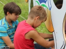 Біля атракціону "Корова" зібралось чимало дітей. Кожен охочий сідав і пробував надоїти молока.