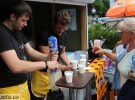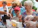 Жінка куштує разом з дитиною молочні коктейлі, на приготування яких організатори привезли тонну молока та 500 кг морозива.