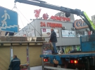 Сьогодні вранці комунальники демонтували усі кіоски перед супермаркетом "Сільпо", що на проспекті Перемоги 84, у Святошинському районі столиці. Частину торгових закладів завантажили до вантажівок та вивезли. Ще кілька кіосків, що торгували цигарками та пресою просто "заховали" на сусідній вулиці генерала Вітрука, що примикає до проспекту.