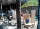 МАФи демонтували, щоб розчистити вихід зі станції метро Святошин, пояснюють комунальники. Вже розібрали 7 кіосків. Сміття, що залишилось після знесення, вивозять вантажівками. Частину кіосків забрала адміністрація Святошинського речового ринку. Їх про демонтаж попереджали заздалегідь, запевняють у благоустрої.
