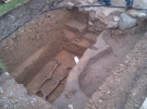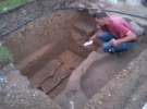 "Після того, як завершимо роботу тут, передамо людські рештки антропологам. Вони зможуть по кістках встановити стать, вік людини, розкажуть про травми, зможуть визначити, який спосіб життя вела людина, за характерними професійними травмами - ким ймовірно працювала. Тут можуть бути захоронення, що належать до різних епох. Можливо, це давньоруські скелети. А може належать до XVII-XVIII століття. В цей час на території Софії Київської саме функціонував монастир, і, можливо, це поховані місцеві ченці. Ось одне із захоронень. В ногах у померлого лежить шматок цеглини. Раніше, коли ховали ченців, їм у ноги клали плитку - такий був звичай. Тому це може бути свідченням того, що перед нами служитель монастиря".
