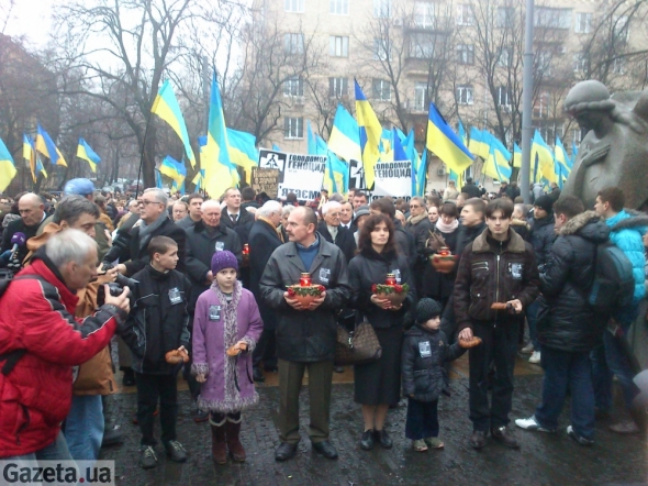Лідери опозиції та громадські діячі поклали свічки пам'яті до Національного меморіалу пам'яті жертв голодоморів. Так лідери "Батьківщини" Арсеній Яценюк та "УДАРу" Віталій Кличко зробили це з дружинами. А "свободівець" Олег Тягнибок - з сином.